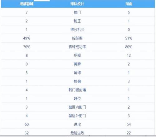 但仅此而已,半场河南仅仅在控球率上略略高于主队,但射门数5比7、危险进攻22比32,角球1-5,0-1的比分没有被进一步扩大已经算是侥幸。